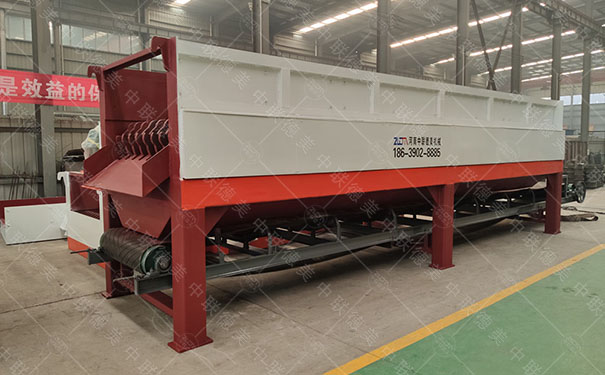 单轴传动的变倾角等厚滚轴筛,所有筛轴均向同一方向转动,使物料向前移动,同时搅拌物料,对符合粒度要求的小颗粒物料,通过自重作用和筛板旋转力的作用,由筛孔下降,将不符合粒度要求的大颗粒物料直接由皮带输送;继续向前移动,将多级联动滚轴筛向前移动,由破碎机向下破碎。变斜率等厚滚轴筛是在普通平筛滚轴筛的基础上研制出的一种新产品,其筛面采用等厚筛分原理,设计成三个具有不同倾角的筛面一次排列,靠近进料斗的筛面倾斜角为25°,使进入筛机的物料迅速向前移动,减薄物料层厚度,---前筛面未堆积,有利于物料的筛分;中筛面倾斜度为15°,此时物料量仍然很大,因此,采用中筛面倾斜度为25°,除物料层厚度迅速增加外,还能使物料在该筛面上得到有效筛分;第三筛面接近进料口的第三筛面倾斜度为5°,有利于物料在该筛面上的前进;接近进料口的进料面倾斜度为5°,有利于物料在该筛面上的前进。